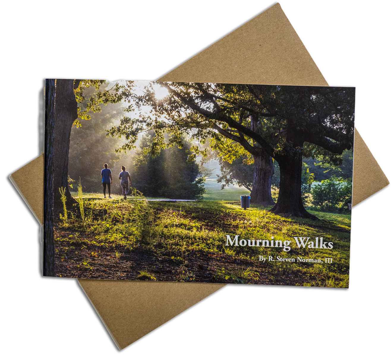 Grief is a journey, and it is unique for each person. In his sympathy booklet Mourning Walks, professional photographer and former pastor Steven Norman has compiled a collection of stunning nature photographs paired with comforting Biblical texts which walk the reader through the four tasks of mourning. This book is an ideal long-term gift for someone who is mourning the loss of a loved one, and a much more meaningful alternative to a sympathy card. Steven’s goal with this book is for the grieving reader to see their loss and their life going forward with new eyes.